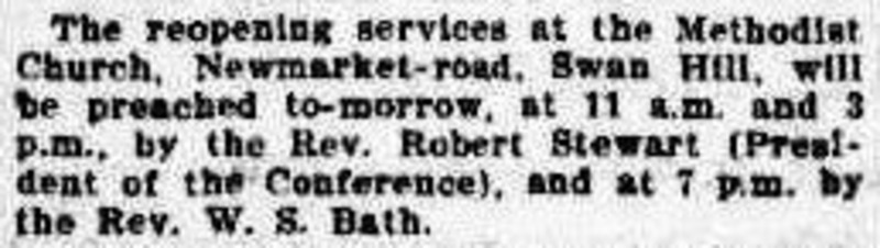 Interestingly, the preacher at that service, Mr Stewart Byron, seems to have been a Presbyterian minister, known as the “singing evangelist” (http://nla.gov.au/nla.news-article287570532), who held number of evangelical mission services with Wesleyan and Baptist churches (http://nla.gov.au/nla.news-article174764164). It might have been part of a wider evangelical movement, formed as part of the 1886 Presbyterian conference, which included speakers from Methodist, Congregation and Baptist churches, as well as principal support from the Anglican church in Australia (https://listeningtothebasisofunion.com/2019/12/27/a-century-of-uniting-churches-in-australia-part-1/)